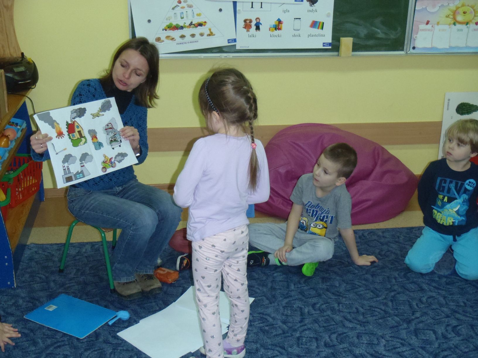 Na zajęciach omówiono temat powietrza oraz jego zanieczyszczeń. Dzieciom został uświadomione, że powietrze jest wszechobecne i niezbędne do życia, a jego czystość jest źródłem zdrowia. Dowiedziały się co to jest powietrze jak i gdzie powstają zanieczyszczenia powietrza i w jaki sposób można im zapobiegać. Poznały również znaczenie kolorowych atmoludków obrazujących stan jakości powietrza w województwie pomorskim. Zajęcia przeprowadzono w formie pogadanki aktywizującej z wykorzystaniem zabaw dydaktycznych :„Zatkany nos”, „Dmuchanie balonu”, „Dopasowanie Atmoludka” oraz „Naśladowanie atmoludka” . Na koniec dzieci otrzymały edukacyjne kolorowanki oraz kolorowe naklejki z postaciami atmoludków . Poniżej zdjęcia z zajęć, zapraszamy do oglądnia.